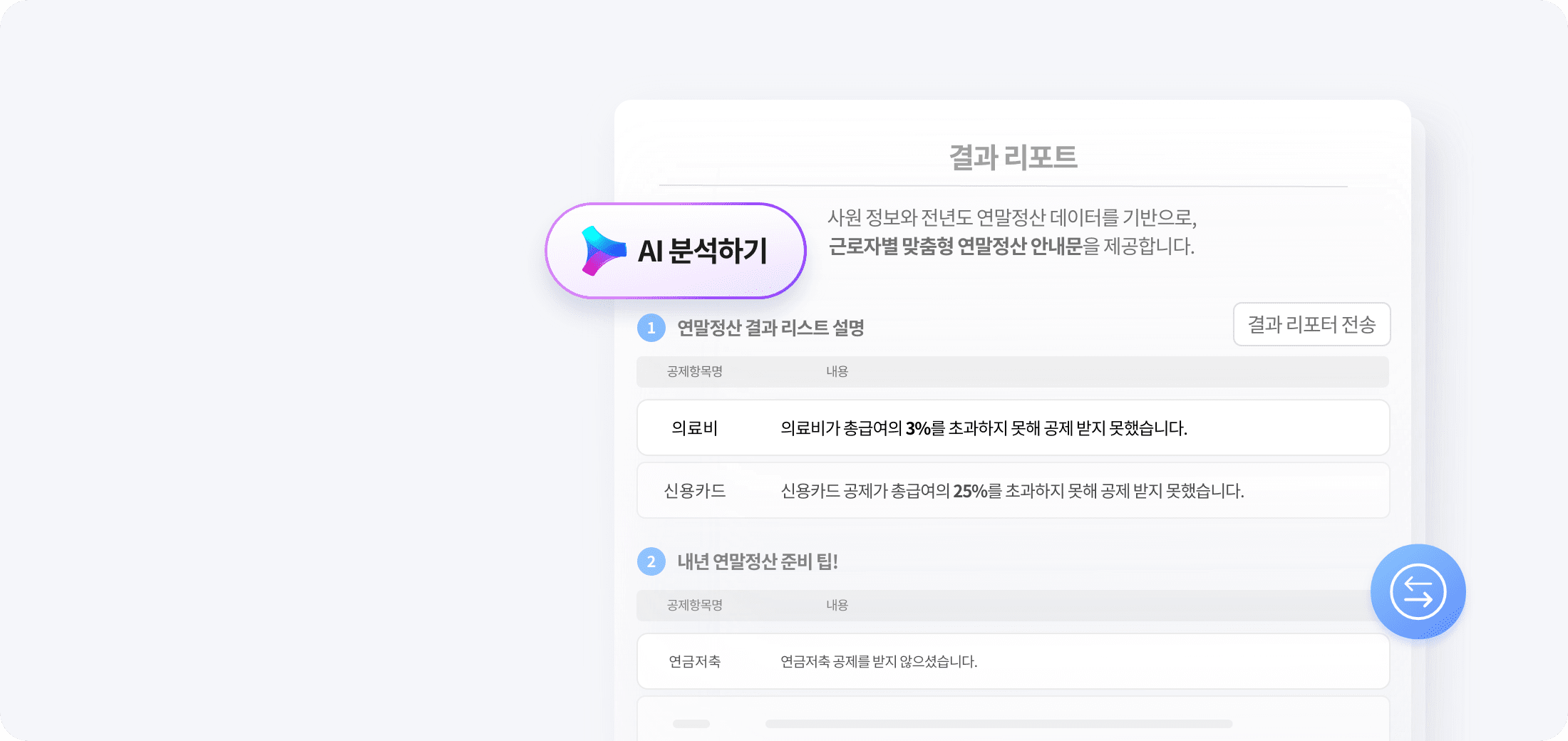 직원의 만족도는 올라가는 AI 연말정산을 만나보세요.