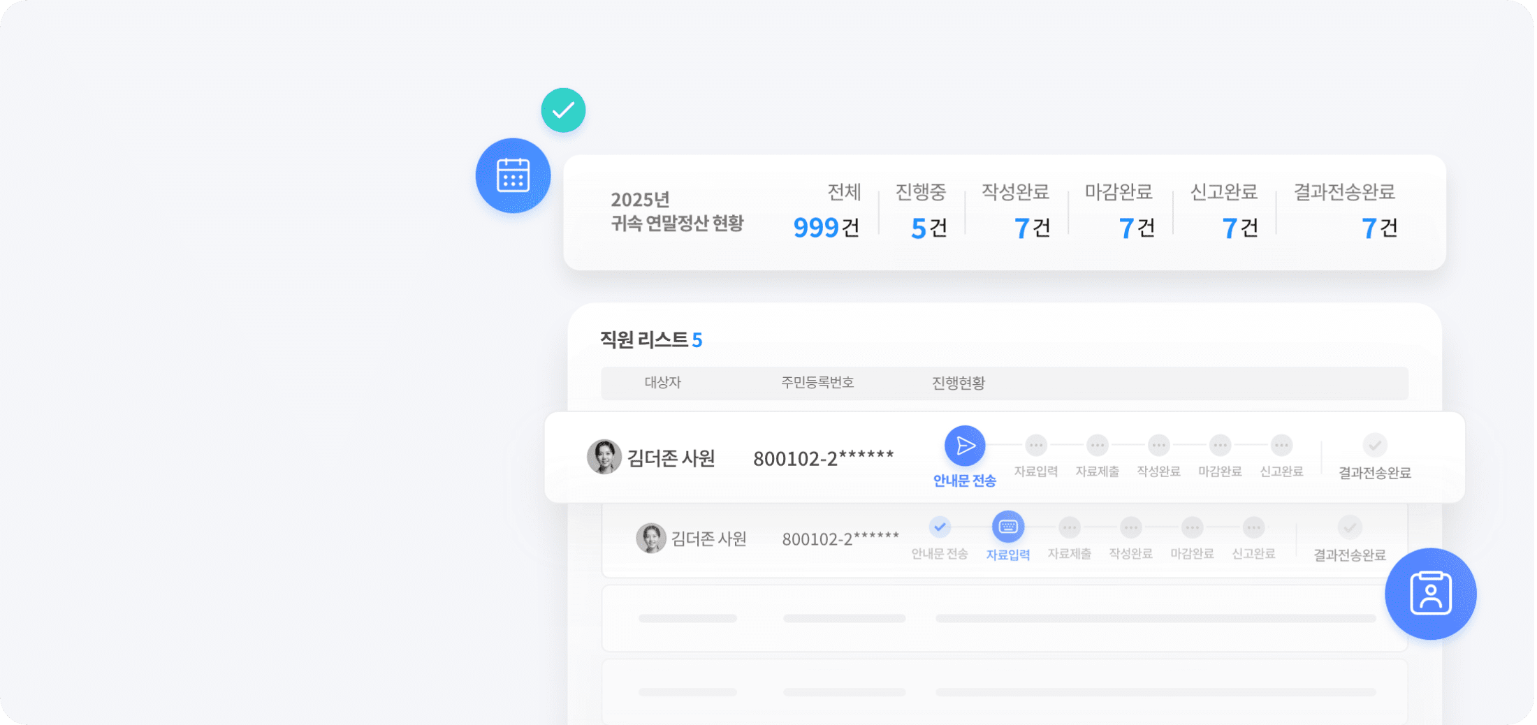 직원이 이해하기 쉬운 결과 리포트까지 제공하여 인사담당자의 업무 부담을 줄이고 직원들은 더 편리하게 연말정산을 준비할 수 있습니다.