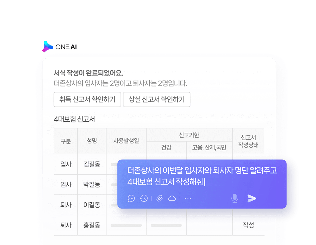연말·연초의 소중한 시간을 지키기 위해, 연말정산은 ONE AI가 도와드립니다.