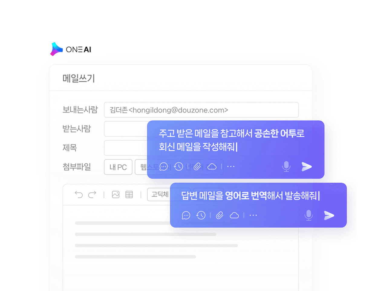ONE AI는 WEHAGO에 결합된 생성형 AI 서비스입니다.